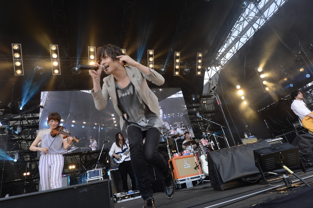 一方、もう一つのメインステージである“SKY STAGE”のトップバッターを努めたのはBIGMAMA。ストリングス担当の東出真緒を中心に、ベートーヴェンの「第九」など、誰もが知っているクラシックのメロディを引用した、“ど”が付くほどキャッチーでハイカロリーなポップ・パンクの数々で観客を盛り上げた。MCでは、ヴォーカルの金井政人から<音楽には不幸を遠ざける力があると思います>という情熱的な発言も飛び出すなど、夏の日差しにも負けない真っ直ぐな演奏を披露した。