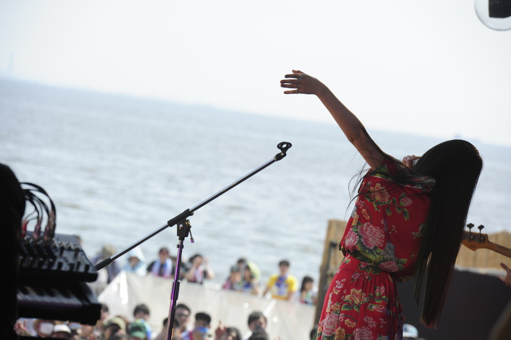 彼らを見ながら不思議な感覚に陥ったのは、10年以上前に一世を風靡し、その後ブームが落ち着いたいわゆる“青春パンク”ムーブメントの面影を強く感じたから。とは言え、そうした要素を強く感じたのは楽曲より、むしろ、フェスの一期一会を強調するような彼らのMCだったかも知れない。人気曲「PARTY PARTY」をはじめビーチにお似合いのセットリストの数々がそのパフォーマンスの魅力を大きく後押しし、会場は大いに盛り上がった。終盤に披露された「夏のトカゲ」では、盆踊り風のリズムに合わせて無数のタオルが空中で回った。