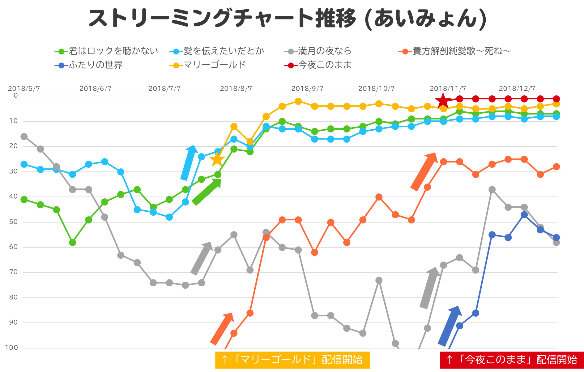 ※「マリーゴールド」、「今夜このまま」の配信開始タイミングで過去のあいみょんの楽曲が再び再生数を伸ばしていることが分かる。