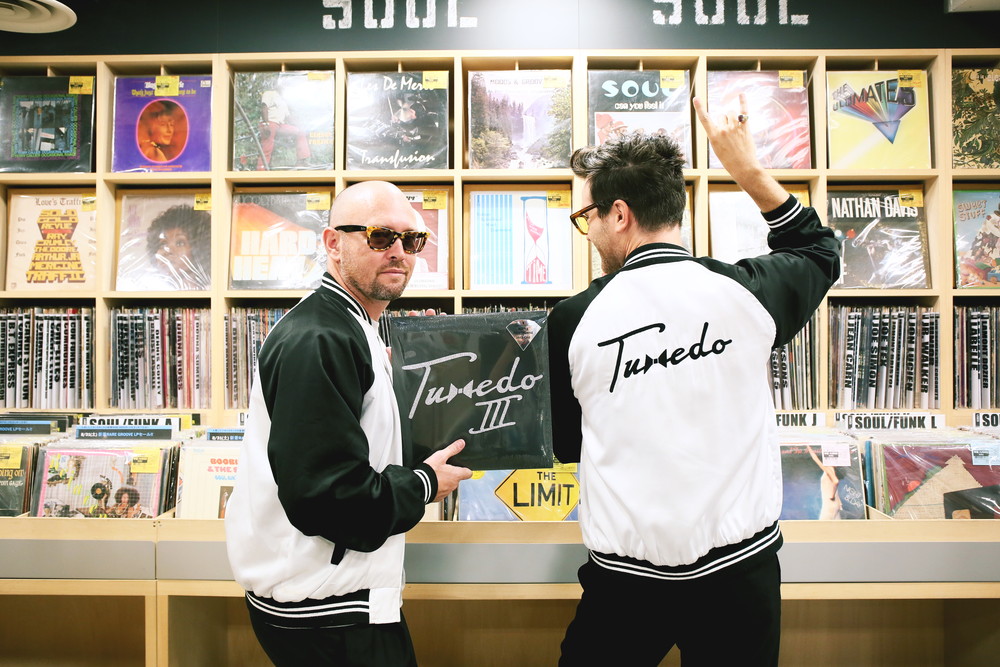 来日アーティストに様々なものを日本で探求、発見してもらう企画、japan(finds)! 今回は、2019年11月に最新作『Tuxedo III』を引っ提げたバンド編成での来日公演を開催するタキシードのメイヤ―・ホーソーンとジェイク・ワン2人が登場。9月に最新作リリースを祝したDJセットでのジャパン・ツアー開催した2人にインタビューし、レコードショップで彼らの音楽に影響を与えたアナログ・レコードをいくつか選んでもらった。