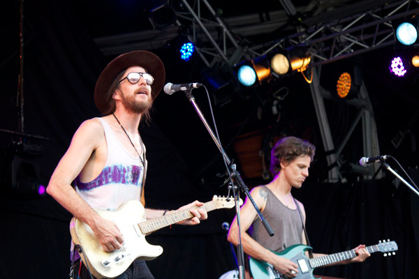 2日目のフィールド・オブ・ヘブン。同ステージのトリを務めるのが元グレイトフルデッドのフィル・レッシュとあって、早い時間帯から“デッドヘッズ”と言われる猛者たちがヘブンに集結していたこの日。少しだけ陽が陰り始めた16時過ぎ、ジョナサン・ウィルソンがバンド・メンバー4人を従えステージに登場。スラリとした風貌に使い込まれたオフホワイトのテレキャスターが良く似合う。古き良きアメリカン・ロックを体現しているのは音楽性だけではない、と思わず言いたくなるルックスのジョナサン。独特の存在感とオーラはヘッズたちにもビシビシと伝わっていたに違いない。冒頭からフリートウッド・マックの「エンジェル」と100%期待を裏切らない選曲で一気にオーディエンスを自身の世界へと引きずり込んでいく。レイドバックしたサウンドと、ジョナサンの絶品スライド・ギターに酔いしれる、なんとも気だるく心地よい時間。やがて、ゆっくりと傾いていく太陽に調子を合わせるかのように、アコースティックギターに持ち替え70年代ウエストコーストを彷彿ささせるナンバー「Moses Pain」を奏でる。本人はMCで“マジカル・プレイス”と語っていた通り、そこはまさに自然と音楽が同化する、魔法の場所だった。