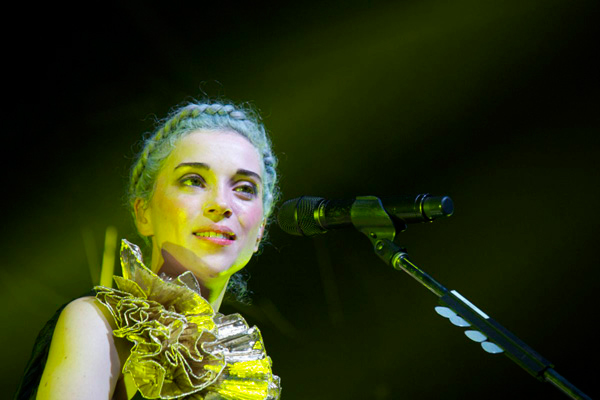 セイント・ヴィンセントことアニー・クラーク嬢が、遂に苗場に降臨!最新作『St. Vincent』からのナンバーを立て続けに演奏し、キレキレのギタープレイとお馴染みのテケテケ・ウォークが序盤から炸裂。これまでのステージは、アニーの独壇場のような印象があったが、デヴィッド・バーンとのツアーで、バンド・メンバー一丸となってステップを踏む“魅せる”パフォーマンスに触発されたのか、「Birth In Reverse」では、モーグ&ギター担当のEnonのトーコさんがステップに加わるなど、ステージング、セット、衣装にも彼女の常に進化し続けるアーティスト性とこだわりが伺えた大満足のステージとなった。それにしても「Cheerleader」で、ステージ中央に用意されたお立ち台で「アタシはもうチアリーダーなんかになりなくない!」と歌い上げるアニー嬢、麗しすぎました。