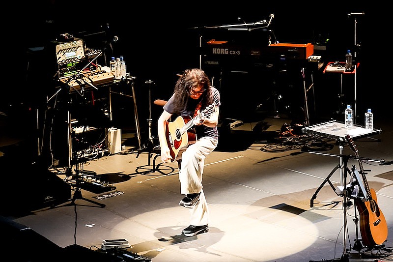 開演前には、MCとして同局でDJを務める加美幸伸が登場。「日本を代表するミュージシャンが集う一日。ゆったりとライブやトーク、出演者の豪華なショーを楽しんで」と開幕を告げると、ライブはまずは小倉博和のソロステージから始まる。饗宴の幕開けに選んだ1曲目は自身の5枚目となるアルバム『SNOWFLAKES』から「Playground」。アコギ1本のインスト曲だが、ボディを叩きながらパーカッシブなグルーヴを押し出し、さらりと会場の熱を高めていく。「本日はようこそ。最後までゆっくり楽しんで」と、さっそく1組目のゲスト、山弦のパートナーでもある佐橋佳幸を呼び込む。