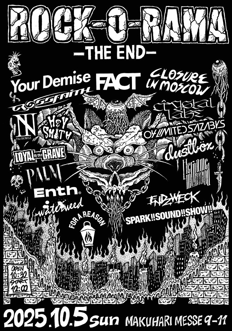 FACTが10年ぶりに開催する【ROCK-O-RAMA-THE END】の出演バンドが一斉解禁となった。 タイトルの“THE END”の通り、2024年に再始動したFACTが本公演をもって“本当の解散”となる。正真正銘のラストライブとなるこの日に…