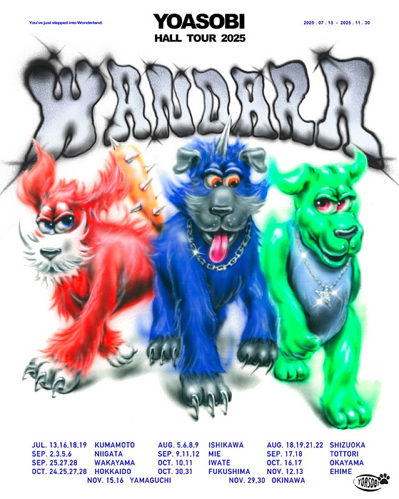 YOASOBIが、2025年7月から開催するホールツアー【YOASOBI HALL TOUR 2025 WANDARA】のオフィシャルグッズラインナップを公開した。 今回発表されたツアーオフィシャルグッズは、メンバーがデザイン監修を手掛け、ツアー…