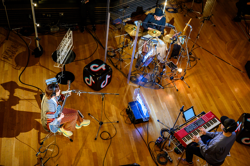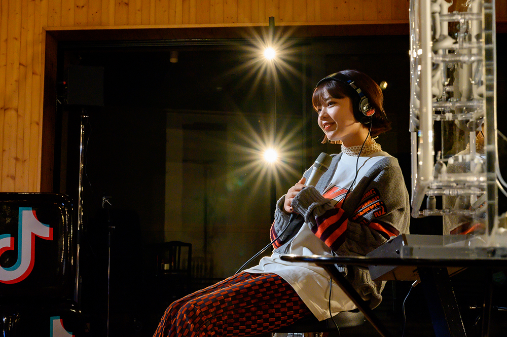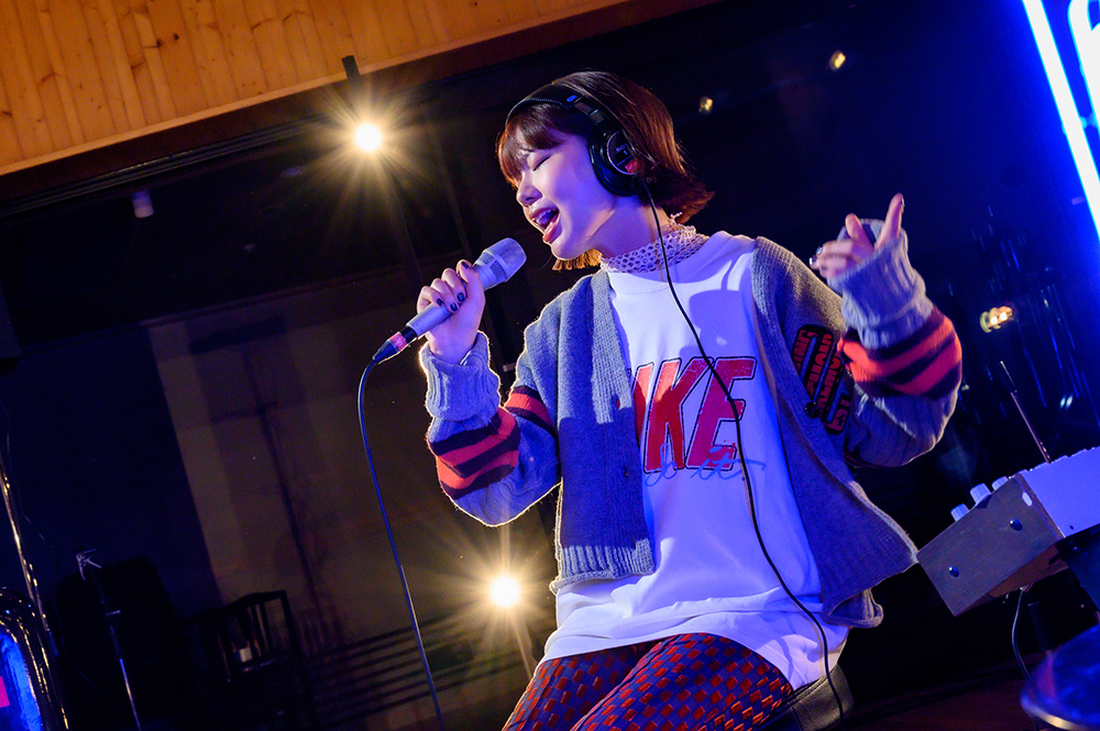 キーボードの美しい旋律が聴こえてくる。満面の笑みを浮かべてステージに登場したasmi。エレキギターと共に、ライブは「Mon Star」でスタートした。asmiの透き通る歌声、そしてメローなドラムとキーボードによって、スタジオが優しい雰囲気に包まれていく。歌い終えると「ヘッドホンしているライブが初めてで新鮮。スタジオもキラキラで楽しい気持ちです」と顔をほころばせる。続いて、絶妙なあんばいで伴奏とasmiの歌声が溶け合う「例えば」へ。歌詞の情景が目に浮かび上がっていくのを感じた。