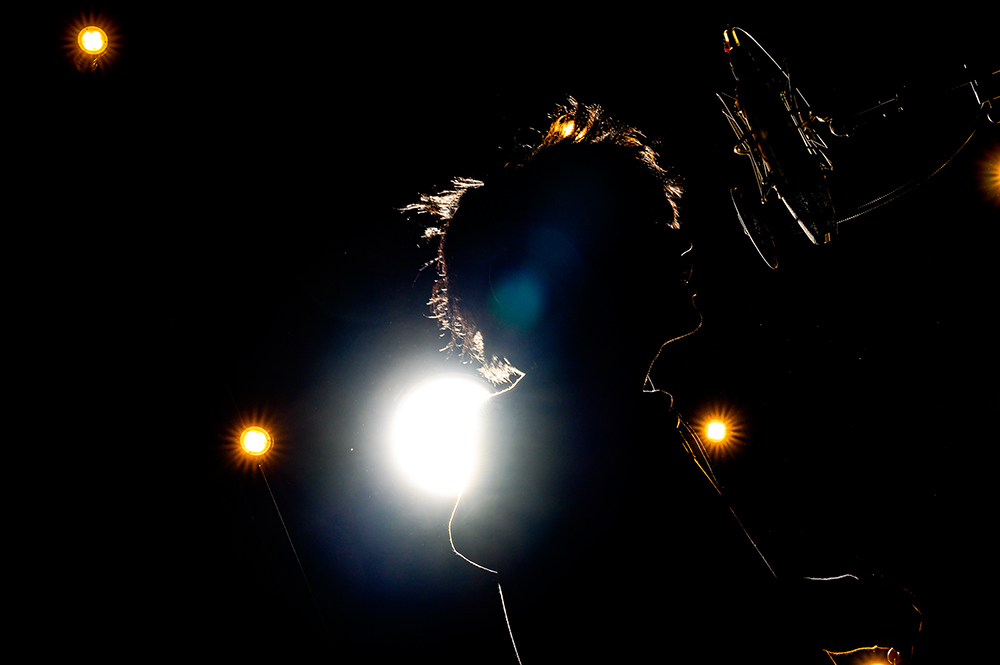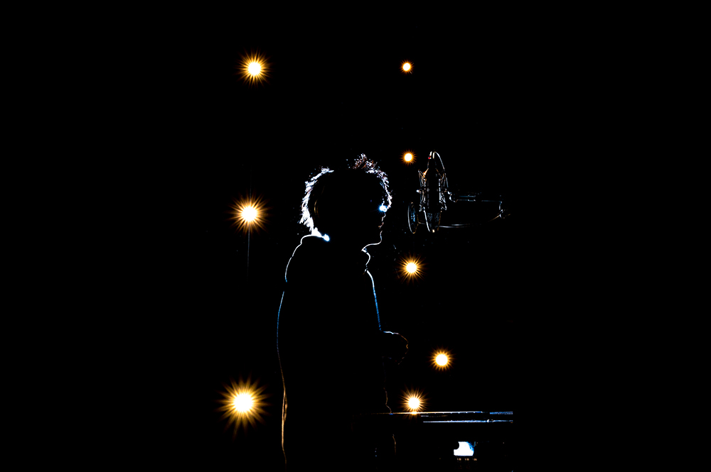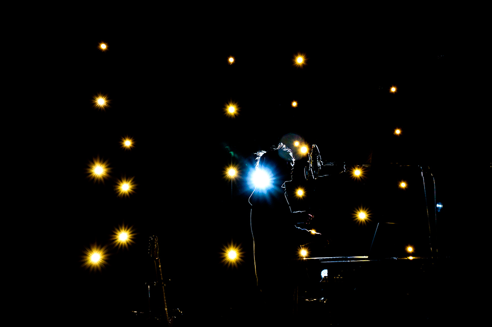 静寂に包まれたステージにmeiyoが登場。第一声「よーしやるぞ」と自らを奮いたたせると、ライブは「KonichiwaTempraSushiNatto」でスタートした。頭から離れないインパクトのあるフレーズを繊細なボイスで届けていく。続けて披露された楽曲は「うろちょろ」だ。間奏、サンプラーでビートを作り上げていく姿もまた見応えがあった。約12年間音楽活動を続けてきたmeiyo。そんな中で4、5年前に作り上げたという「机上の空論」では、ストーリー性溢れるその歌詞をエレキギター一本で表現していく。さっきまでの高揚感溢れるステージとは一転して、しんみりとした空間が流れ始めた瞬間だった。