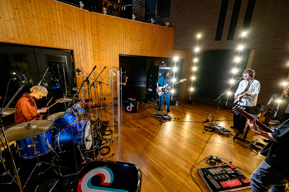 「続いては、TikTokでもたくさんの人に聴いていただいてる、“クズな男のラブソング”」という紹介から始まったのは「愛してるって」。温かみのあるサウンドと、あまりにも生々しいフレーズが並ぶ歌詞の対比が衝撃的ながらも面白い曲だ。