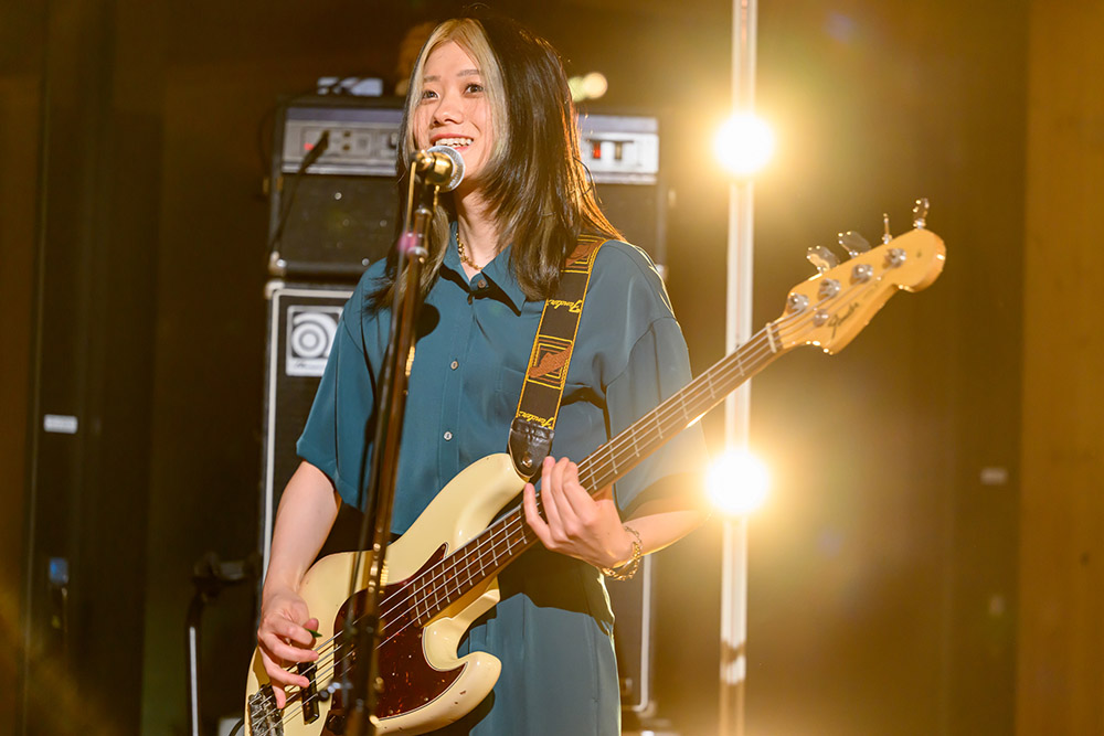 「あなたが生きているだけで、きっと世界のどこかでは救われている人がいるんじゃないかなって考えてます。少なくとも僕らは、何気なく観て聴いてくれているMVの1再生、TikTokで楽しく踊ってくれている投稿を観てとても救われました。その小さな一つ一つが積み重なって今日こんな大きなステージに立てています。大げさではなく、出会ってくれたあなたのおかげです。本当にどうもありがとう」とほりうちが語ると 「たくさんの出会いをくれた曲」として 「カシスオレンジ」へ。壮大さと切なさが共存しているメロディーが耳に残る。メンバーも曲が進むに連れ楽曲にどんどん入り込んでいる様子が伺えて、それが演奏の力強さに反映されていたように見えた。
