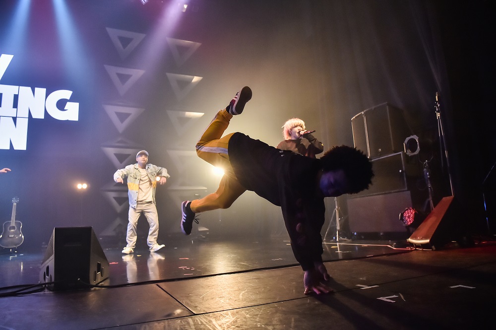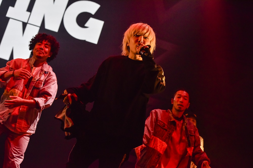 続いて、<STARTERS MATCH>より選出された3人組ヒップホップクルー・電波少女が登場。パフォーマンス&ボタンを押す係ことnicecreamのアクロバティックな登場でオーディエンスの度肝を抜くと、間髪入れずに「GXXD MEDICINE」を投下。等身大のリリックと新人枠とは思えない堂々とした佇まいで、さらに観客の耳と目を引き付けていく。