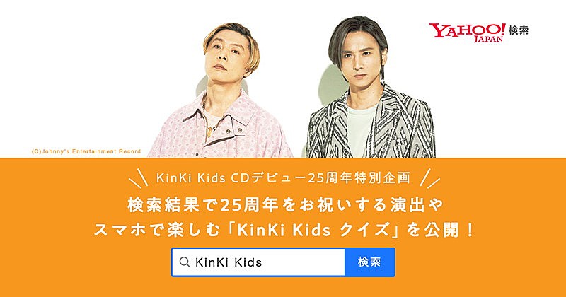KinKi Kidsとヤフー株式会社(以下、Yahoo! JAPAN)とのとの特別企画がスタートした。 CDデビュー25周年を迎えるKinKi Kids。8月31日までの期間限定で実施される本企画では、Yahoo!検索で「KinKi Kids」と…