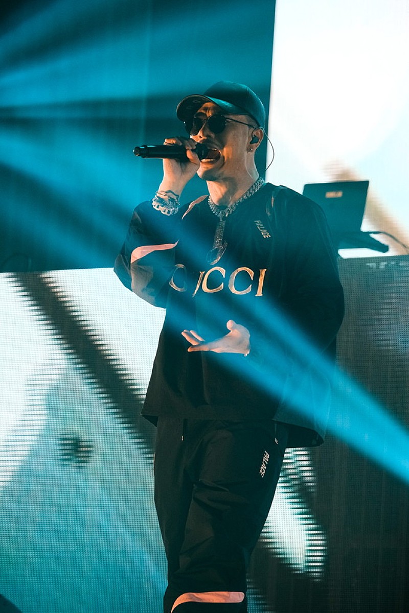 しばしの休憩時間を経て、「UP IN SMOKE」のイントロを轟かせステージに登場したのはMONYPETZJNKMN。スモーキーなヴァイブスを漂わせつつ、マイペースにオーディエンスを煽っていく。出番の最後は、絶賛ヒット中のMonyHorse「SUSUME」で締めくくった。PERSIAは電動キックボードで颯爽と(かつ派手に)ステージに登場。ストリートで鍛え上げたパフォーマンス力で会場をハイな雰囲気で包み込んだ。RAM HEADも参加した「YAH」では見事なハーモニーを聴かせた。PERSIAからのバトンを受け継ぐかのごとく、後に続いたのはジャパニーズマゲニーズ。MC含め、自分たちの“飛び道具”を存分に活用した見応えあるステージで魅了した。孫GONGは「今、猛烈に感動しています。こんなところで歌えると思っていなかった。ありがとう」とオーディエンスに謝辞を述べ、「最後の一本」を披露。アリーナ後方から上階の席まで手を左右に振り続けるオーディエンスの様子も、印象的な一幕だった。その後、C.O.S.A.が登場すると場の空気はさらにタフなヴァイブスへ。クールに、そしてヘヴィに畳み掛けるラップに心酔するひと時を演出した。