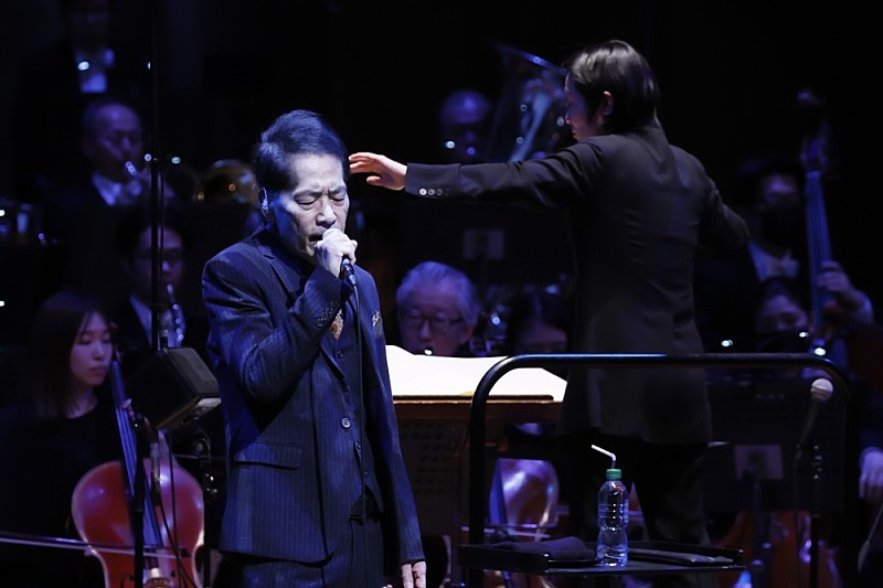 続いて現れたのは稲垣潤一。大ブレイクのきっかけを掴んだ1982年リリースの3枚目シングル曲であり、作詞家・秋元康にとっても最初のヒットになった「ドラマティック・レイン」で衰え知らずの高音を響かせ、MCでは対照的な低い喋り声にて、当時の担当ディレクターとのレコーディング秘話で客席を湧かせた。次の歌も同じく筒美京平が作曲を手掛けた1983年の佳曲「夏のクラクション」。会場をあの頃と変わらない、気だるい夏の終わりのキラキラとした空気で包みこむ。オーケストラの創り出す音のひとつひとつを聴き漏らさず、それにしっかりと呼応するかのような歌唱も印象的だった。