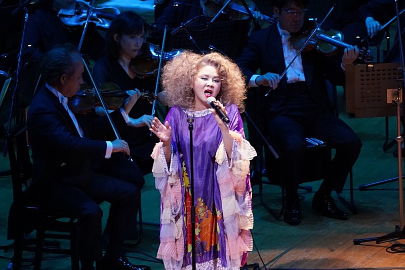 美しいイントロに導かれて小柳ゆきが登場し、5枚目のシングル曲「be alive」(2000年)を披露。MCでは「出演させていただくのは毎回、自分にとってご褒美の時間」と語る。今回、東京公演のみで兵庫公演(3/29:兵庫県立芸術文化センター)には参加しない彼女には3曲が与えられ、2曲目に選ばれたのはOfficial髭男dismの楽曲「Cry Baby」(2021年)。TVアニメ『東京リベンジャーズ』のオープニング主題歌であり、昨年リリースした最新カヴァー・アルバム『RARE TASTY』でも冒頭を飾っていた曲だ。彼女曰く「ゴージャスな喧嘩の歌」ということで、この日着ているどこか勇ましい衣装の理由もここで判明。激しい転調が特長のヴォーカリストにとって難曲で知られる(オーケストラによる演奏もまるで現代音楽を思わせる)このナンバーを、見事に自分のものにしていた。もちろん3曲目の鉄板バラード「あなたのキスを数えましょう~You were mine~」(1999年)も最高だった。