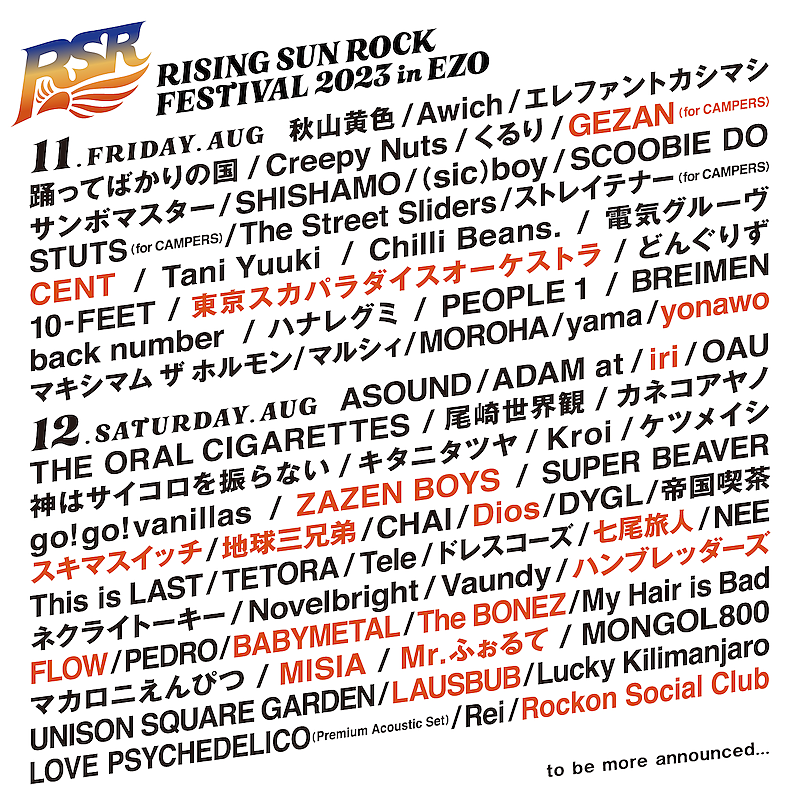 8月11日と12日に北海道石狩市の石狩湾新港樽川埠頭横 野外特設ステージで開催される【RISING SUN ROCK FESTIVAL 2023 in EZO】の第3弾出演アーティストが発表された。