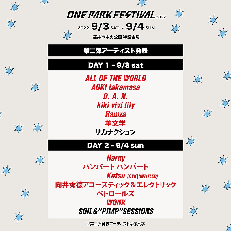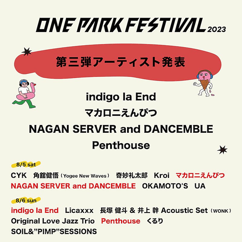 8月5日、6日に福井県・福井市中央公園・特設ステージをメイン会場として開催される音楽フェス【ONE PARK FESTIVAL2023】の第3弾出演アーティストが発表された。 出演が決まったのは、indigo la End、マカロニえんぴつ、NA…