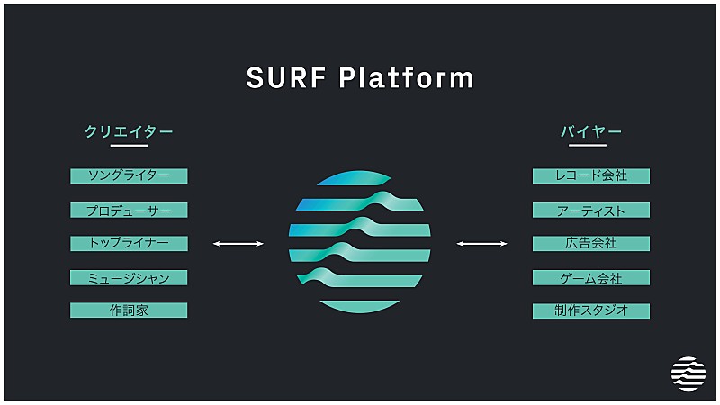 「Bringing power back to the creators」(クリエイターに力を取り戻す)をスローガンに、プロデューサー、音楽クリエイターが未発表の楽曲を世界中のバイヤーやレーベルに販売できるデジタルマーケットプレイス、SURF Music。日本のソングライター兼プロデューサーである小堀ケネスをCEOとしたスタートアップで、クリエイターが自身の未発表曲を、世界中のエンターテインメント業界のバイヤーに向けて販売できるマーケットプレイスとデジタルツールを提供している。