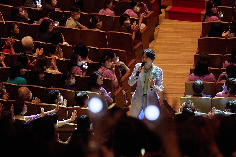 続いて山崎には珍しく、学生時代に愛唱していたというクラシックのレパートリーから2曲。ヴェルディのオペラ『リゴレット』からあの有名な「女心の歌」に続き、トスティの歌曲「Ideale(理想の女)」では、イタリア語の発音の色っぽさと語り口に客席も夢見心地の様子。歴代の名テノール歌手たちが歌い紡いできたこの歌曲は、まさに山崎の美声にこそふさわしい。