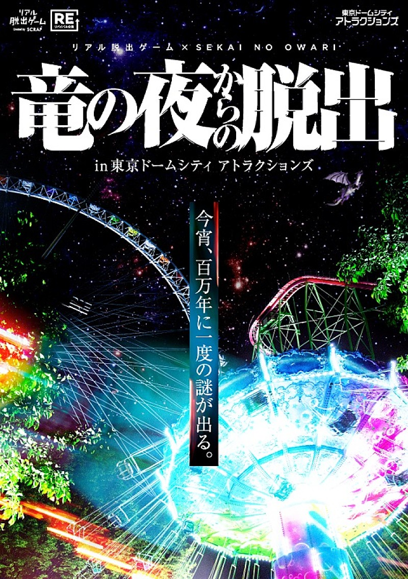 SEKAI NO OWARIとコラボレーションしたリアル脱出ゲーム【竜の夜からの脱出】のリバイバル公演が、2023年11月23日より期間限定で、東京ドームシティ アトラクションズにて実施される。 閉園後の遊園地を貸し切って行われるリアル脱出ゲ…
