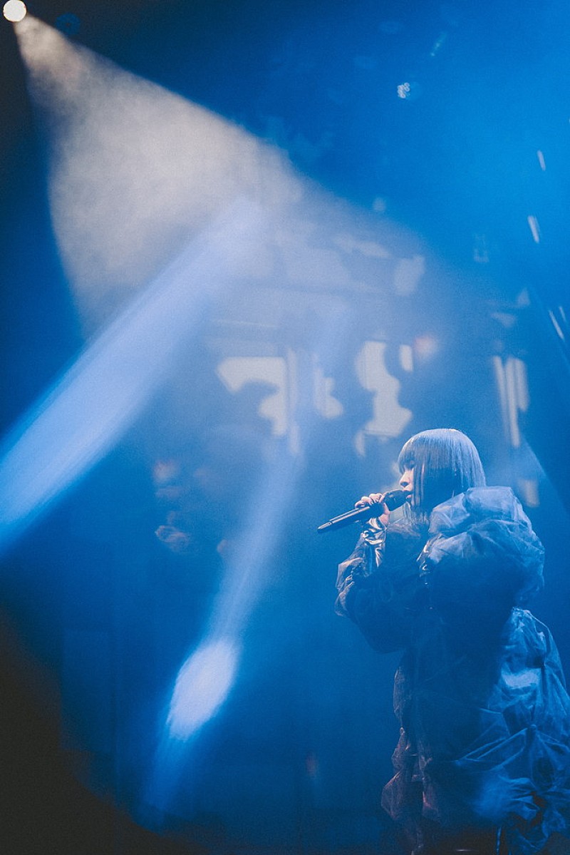「このライブがみなさんが普段感じている、悲しさとか虚しさとか悔しさとか、いろんな感情の逃げ道になればなと思っています」。このライブに対する思いを端的に話した後、「time」(SawanoHiroyuki[nZk]:ReoNa)をカバー。鋭利でダンサブルなサウンド、〈素敵な方へ/そう気付けば色付いていく〉という前向きなリリックが共鳴する「Limit-tension」では観客のハンドクラップが起こり、ナチュラルな一体感が出現。囁くような歌い出し、ダイナミックなサビの表現が印象的な「mist」では憂いを帯びた世界観を描き出すなど、シンガーとしての幅広さをアピールしてみせた。
