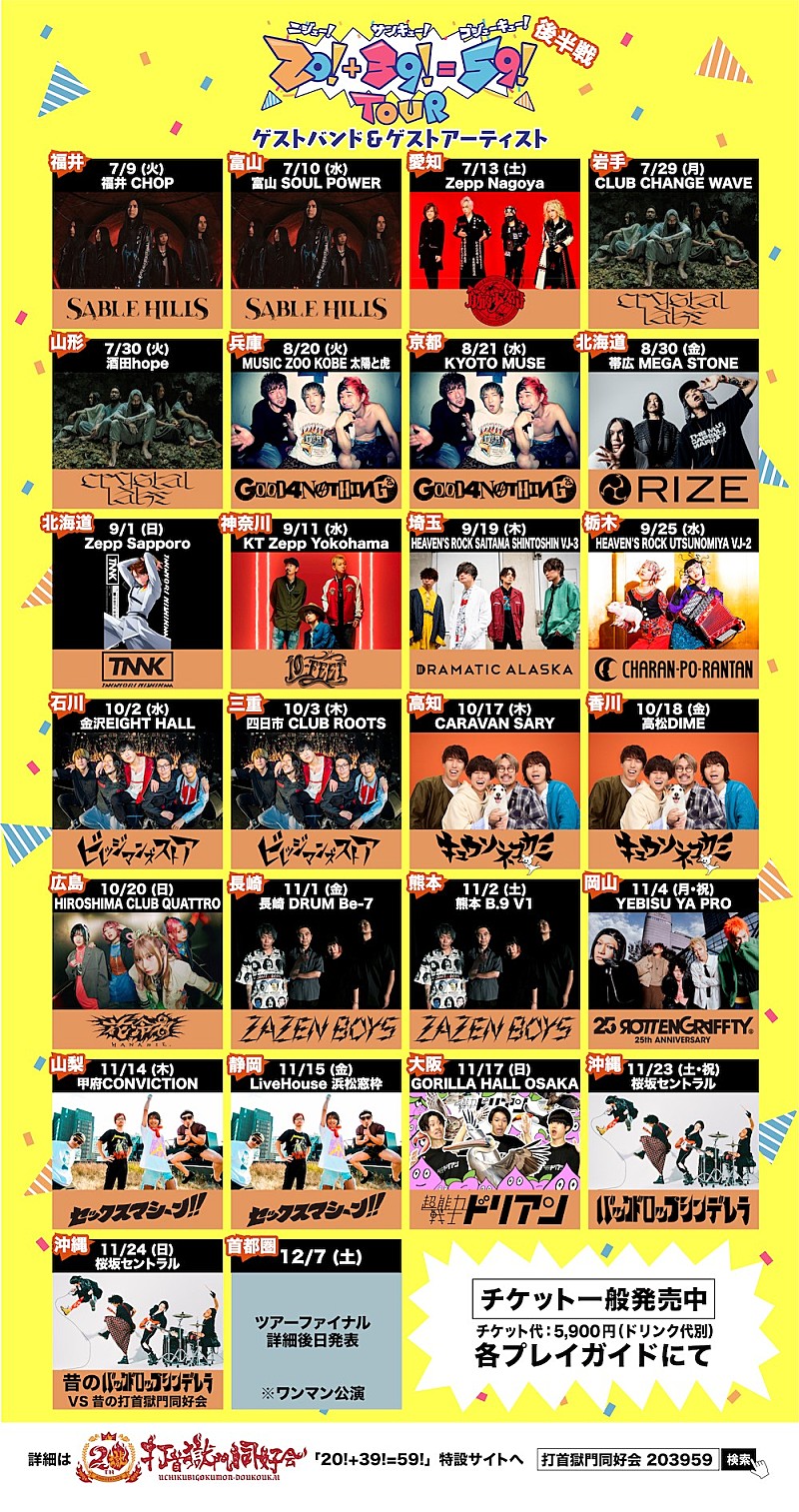 打首獄門同好会が、2024年に結成20周年プロジェクトのうち、当初の予定通りに行えなかった行程があったことを顧みて、新たに2本のライブを発表した。 1本目は、HIROSHIMA CLUB QUATTROでの花冷え。を招いたツーマンライブだ。…