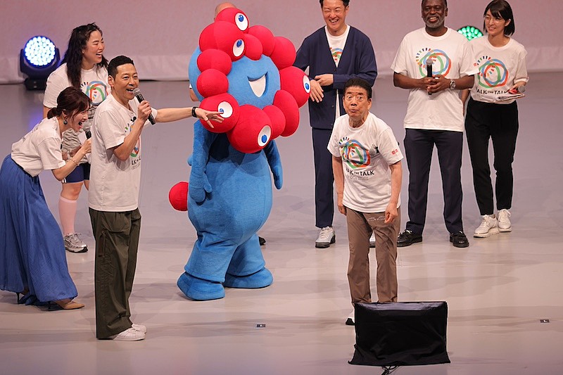 EXPOホール『シャインハット』で実施されたオープニングステージでは、MCの東野幸治、亀井京子、大阪・関西万博公式キャラクターのミャクミャクに迎え入れられJO1が登場。イベントの目的である「実現を目指せる目標をそれぞれ見つけること」についてのトークでは、グループの目標として「Go to the TOPする!!」と力強く発表。そこで、楽しそうに話すJO1メンバーを見た東野が「ムチャぶりをしていきます」と1人ずつに目標を尋ねると、JO1はあたふたしながらも思い思いのアクションについて答え、MC陣と軽快に掛け合う場面も。最後に登壇した西川きよし他、全員で開幕宣言をし、万博会場全体が笑顔でひとつになる日【Walk the Talk for SDGs in EXPO2025 UN&YOSHIMOTO】がスタートした。