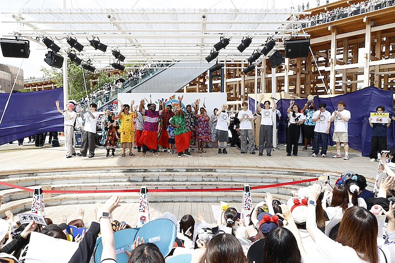 続くポップアップステージイベントでは、メンバーが会場内の野外ステージ2か所に登場。 ポップアップステージ 南では、「#mygoal0615」として日々の目標を話したり、急きょアカペラで歌唱するなど、和やかなムードでトークセッションを展開した。ポップアップステージ 東内では、【~『伝統的な踊りを知る』~with バヌアツ】が開催され、大屋根リングからも見られるステージということで、JO1を一目見ようと大屋根リング上にもたくさんの人が集まる人気ぶり。ここには、全国からバヌアツ留学生が集結し、伝統的なダンスをJO1メンバーも参加して踊ることに。当初はレクチャーを受けダンスをする予定が、熱い勢いのままに曲が流れ出し、全員フリーダンスで対応。心で通じ合い、リズムに合わせて体を動かすことで、文化交流をはかった。