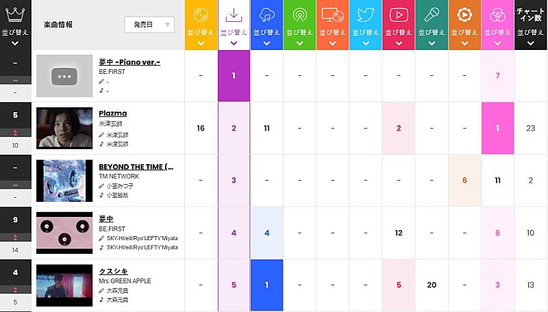1位「夢中 -Piano ver.-」BE:FIRST(6,690DL)