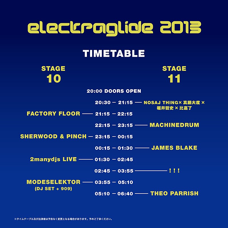 いよいよ今月末に迫った国内最大級のエレクトロニック~ダンス・ミュージック・フェスティヴァル【electraglide 2013】のタイムテーブルとフロアマップが公開された。 今年の【electraglide 2013】は2ルームをブチ抜いた巨大な…