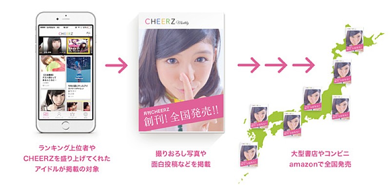 アイドルの写真を見て応援することができるスマートフォンアプリ『CHEERZ(チアーズ)』。マンスリーランキング上位アイドル達のビジュアルブック『月刊CHEERZ』を3か月連続発売することが決定した。 今作には、同アプリ内での「CHEER(応援)」…