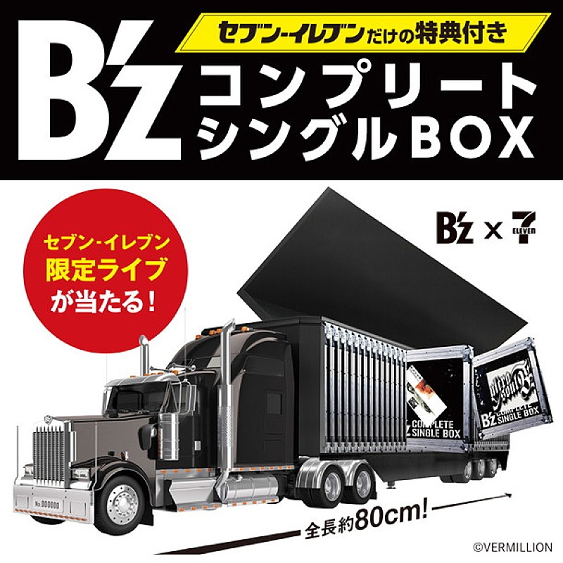 また同時に『B’zコンプリートシングルボックス』の予約受付を、全国のセブン‐イレブンにて開始。セブン-イレブン限定盤の B’z コンプリートシングルボックス 「トレーラーエディション」は、トレーラーの荷台部分にCD、特典DVDが格納されているスケールの大きな、B’z初のボックス商品となっている。そして、豪華特典として購入者のみが行ける限定ライブも開催されるようだ。(※応募抽選となります)