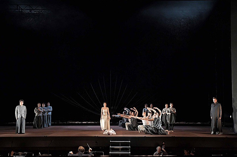歌い手は空中に吊り下げられながら、ダンサーに混じって演技しながら、また時には勢いよくリフトアップされながら歌わなくてはならない、難役となる。今回の松風、村雨の姉妹役には、本プロダクションに出演歴のあるイルゼ・エーレンス、シャルロッテ・ヘッレカントが迎えられており、ダンサーであるサシャ・ヴァルツ&ゲスツたちの動きとの一体感の完成度は見事というほかなかった。