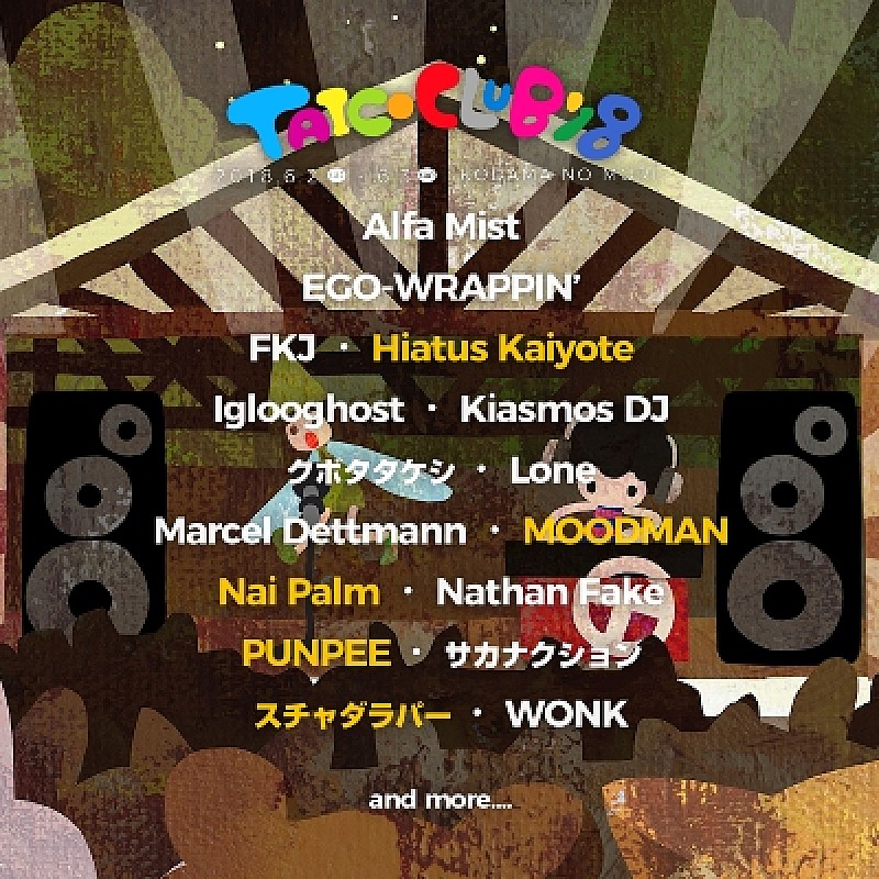 【TAICOCLUB'18】にHiatus Kaiyote/MOODMAN/Nai Palm/PUNPEE/スチャダラパーの出演が決定