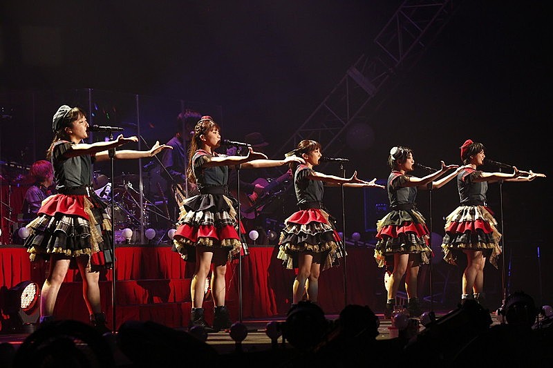演奏の終わりとともに垂幕が切って落とされ、「Family Complex」が始まるもバックバンドの姿はなく、赤いドレープが印象的なステージ上で、いつも通りメンバーのみのパフォーマンスが繰り広げられていく。打ち込みと生バンド演奏の二部構成となっているこの楽曲構成そのままに、途中ステージ上のバックパネルが開かれると、遂にフルバンドの面々が姿を現した。