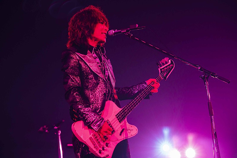 公演はメモリアルなVTRから始まった。今までの公演やリハーサルの様子などが収められたものだ。そして、大きな拍手に迎えられてメンバーが登場すると、ロックバラード「真珠色の革命時代~Pearl Light Of Revolution~」で幕開け。序盤から観客全員が立ちながら手拍子を送り、一体感が生まれていく。続いて「追憶のマーメイド」や「SPARK」と疾走感溢れるチューンでは、吉井の甘い歌声が観客の心を掴んでいく。最初のMCで「ちゃんと満員だ」と吉井が安堵すると、「俺たちも思いっきり楽しみたいと思います。最後までよろしく!」と意気込みを熱く宣誓した。