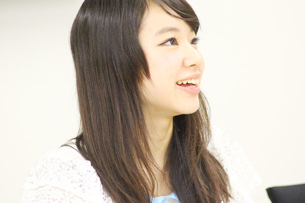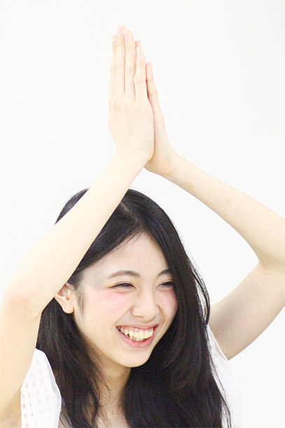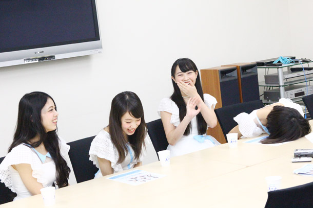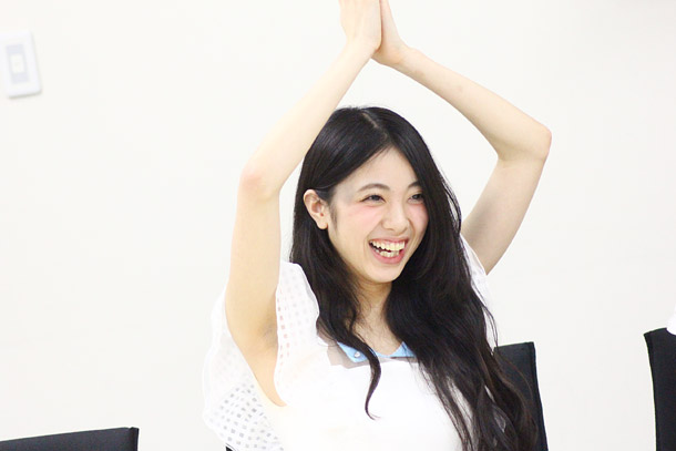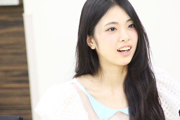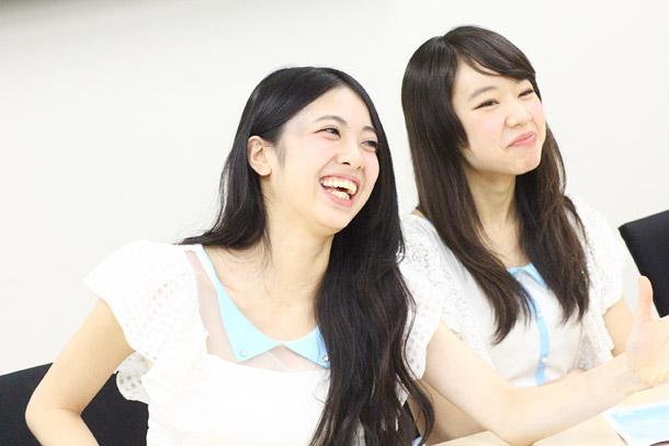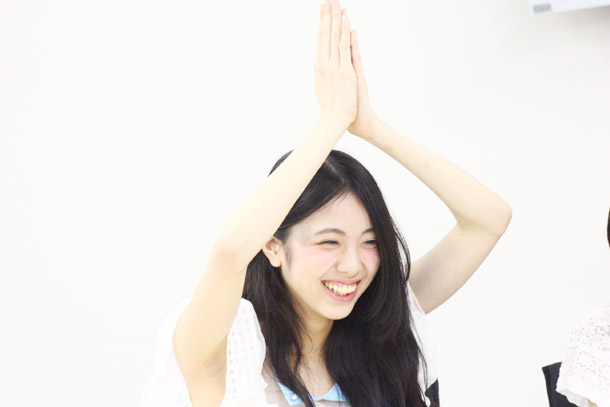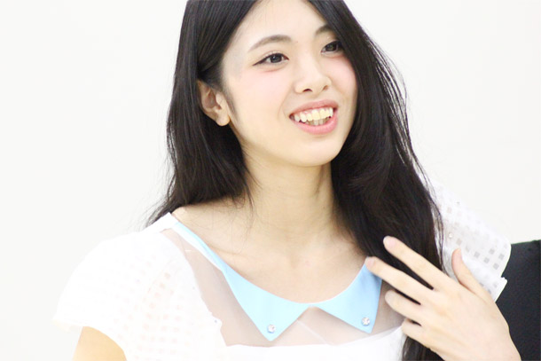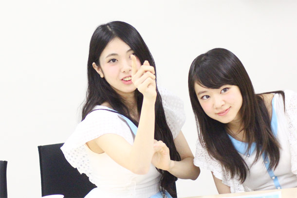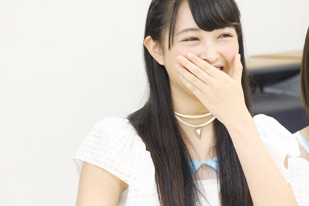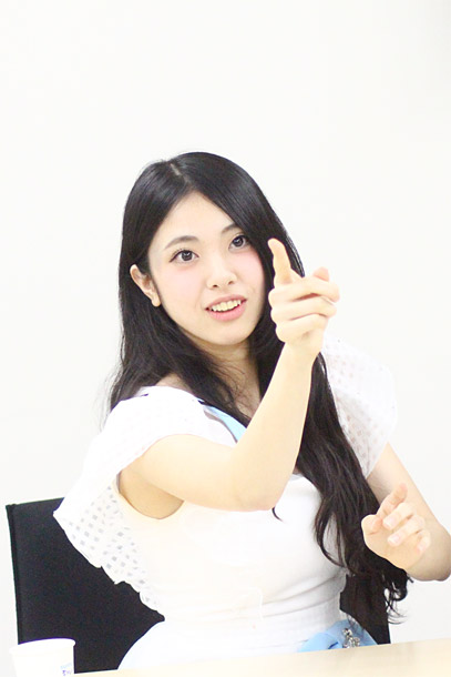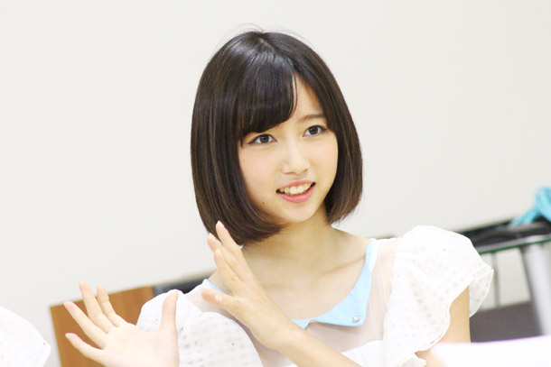 山内遥:さんみゅ~の活動をしていく中で、ブログをやってると女の子のファンの方から「メイク道具見せてほしい」みたいなリクエストが多くて。なので、将来は雑誌モデルさんとアイドルを両立できたらいいなと思います。すごく大きい目標なんですけど、第二のベッキーさんになりたい!--おぉー!