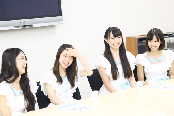 木下綾菜:はい! ℃-uteさんです! さんみゅ~はハロプロさんが好きなメンバーが多くて、ちなみに妖精ちゃんはJuice=Juiceさんが好きなんですけど、私は ℃-uteさんが特に好きで。歌もダンスもすごく格好良いし、スタイルも良いし、それぞれが可愛らしくて本当にもう憧れです!「私もあんな風になりたい」って思います。 新原聖生::私もハロプロさんが好きで、 ℃-uteさんとかJuice=JuiceさんとかBerryz工房さんとか全部好きなんですけど、最近はモーニング娘。'14さんの動画をよく観ていて。人数多いじゃないですか。でもひとりひとりが全力でパフォーマンスしてるし、誰を観てもその人の個性や魅力がちゃんと分かる。見ただけで立ち位置が分かるのは凄いなって思います。 山内遥:私はそんなにアイドル詳しくないんですけど、X21さんとはTIFでコラボさせてもらったりしたのですごく仲良くさせてもらってて、すごく親しみやすくて。私が見てきたアイドルの中では一番可愛いと思います。 小林弥生:私もアイドルになるまではアイドルさんを全然知らなかったんですけど、アイドルになって一番最初に気になったアイドルは、ずっと良い仲間でライバルでもあるベイビーレイズさんです。ライバルなんですけど応援したくなるようなパフォーマンスがすごく好きです。--先に日本武道館立っちゃいますけど。