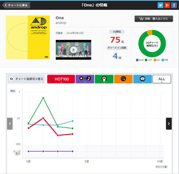 音楽業界が元気ないみたいな風潮がありますが、各現場は全然元気です。(台所事情まではわからないですが)そんなアーティストもピックアップできるようなチャートも是非ご検討下さい!(かなり大変なデータ収集かと思いますが)