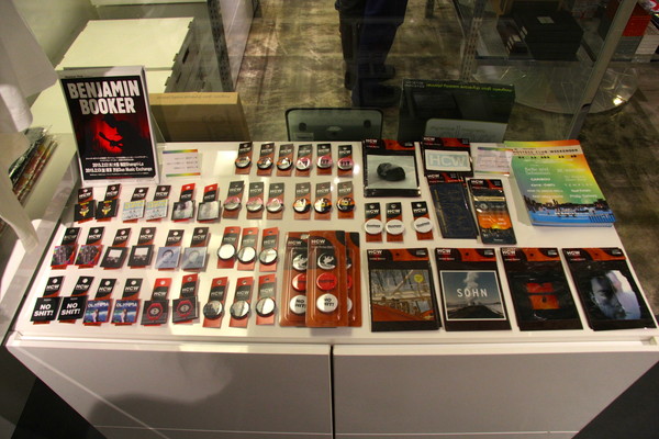 そして、今回のイベントに出演するアーティストや、Hostessが取り扱うCDも販売。お薦めは多種多様なアーティストが楽しめるコンピレーション盤の『NO SHIT!6』ですね。セイント・ヴィンセントやベル・アンド・セバスチャンはもちろん、サーカ・ウェーヴスなど気鋭のバンドも収録。2枚組25曲はお得。
