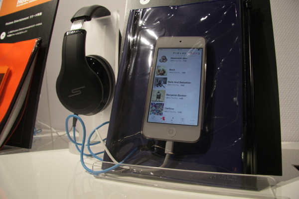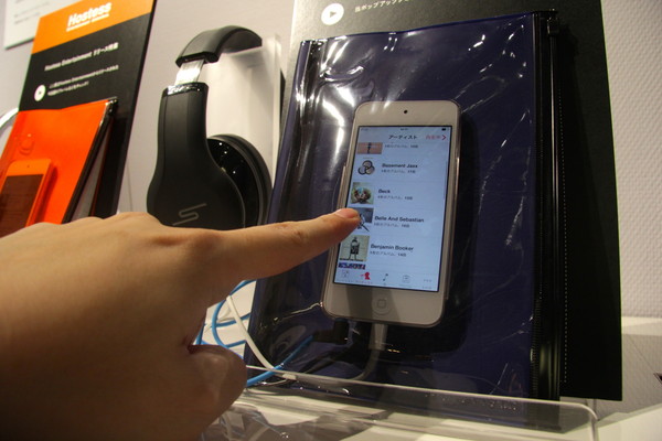 そして、今回コラボレーションをおこなったマークスの持ち歩き、外で使うノート「STORAGE.it 」は試聴機として活躍。スライドジッパーのついた収納ポケットに試聴用の音源などが入ったiPodが収められており、カバーの上からそのまま操作することができます。上下2か所にスロットがあり、そちらからヘッドホン用のコードが伸びています。持ちあるいて使うのにも便利なノートですね。ちょっとした打ち合わせなど「STORAGE.it 」ひとつだけで良いかもしれません。
