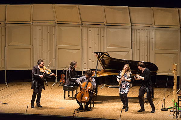リコーダー2本、ヴァイオリン、チェロ、ピアノというユニークな編成の、ドイツからやってきたヴィルトゥオーゾ5人組が、LFJ初日から2公演、大いに会場を沸かせた。その音楽的背景には、クラシックはもちろんのこと、ミニマル・ミュージックやロック、ワールドミュージックなどの幅広い要素がミックスされ、まるでジェットコースターに乗ったかのようなスリル満点のクールさで客席を巻き込んでいく。現在活躍中の作曲家をメインに据えた情熱あふれる「新世代室内楽」プログラム。最後は共に踊り出したくなるような躍動感で、多くの新たなファンを獲得したのではないだろうか。