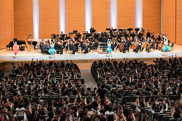 3日間を通じて、一番初めに開催される【0歳からのコンサート】。普段、クラシックコンサートに行くことのできない0歳児から生の音楽を楽しめる企画で、連日 朝の9時30分からロビーに多くのベビーカーが並んだ。子供が出入りしやすいようにと、照明を落とさず客席が明るいまま公演はスタート。前半は、司会の中村萌子の解説とともに、ロベルト・トレヴィーノ指揮シンフォニア・ヴァルソヴィアによってブリテンの「青少年のための管弦楽入門 op.34」が演奏され、各楽器の音色の違いや特性が紹介された。後半は、池上直子、蛯子奈緒美、宇山たわの3人のダンサーが登場し、3種類の舞曲を演奏。ブラームスの「ハンガリー舞曲第5番」では、客席もウエーブで参加し、生演奏の迫力のみならず、音楽と一緒に体を動かす楽しさ、そして全員で共有する喜びを、子供から大人までが味わった。
