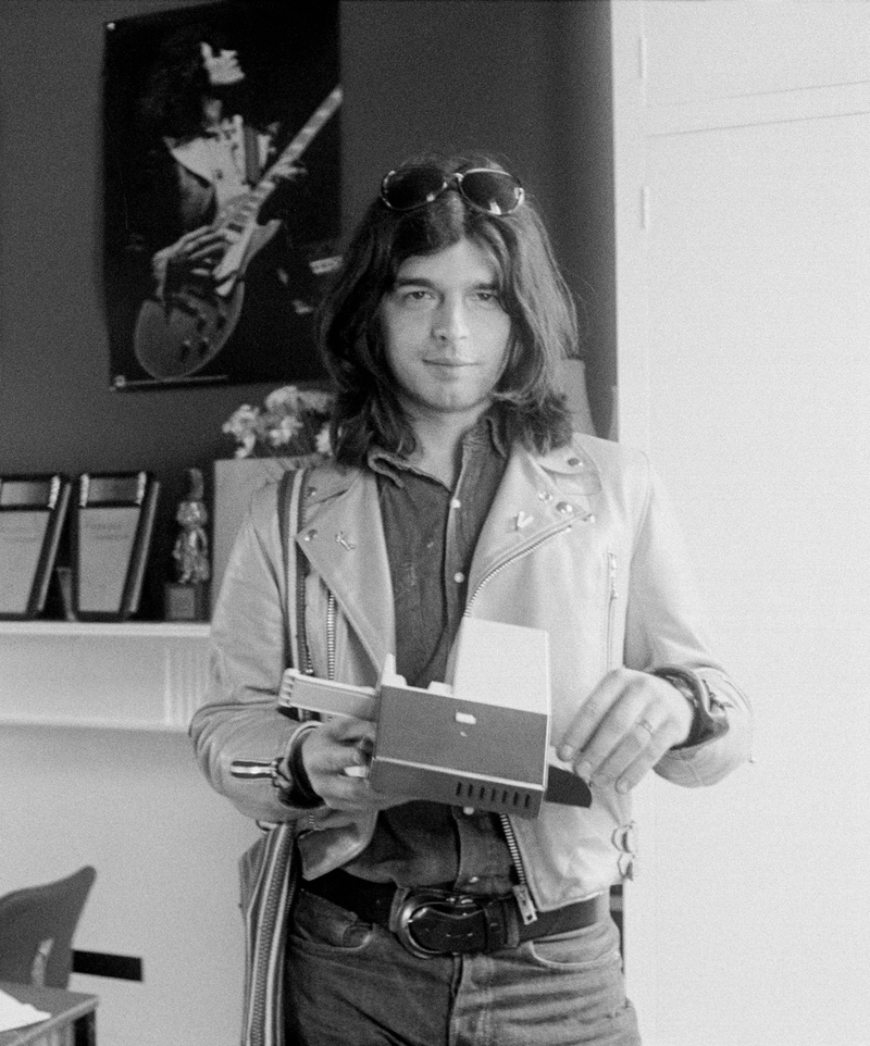 鋤田正義:40年以上前、1972年に会ってます。僕はその年にT・レックスを撮りたくてイギリスに行ったんですけど、まだボウイのこともトニー・ヴィスコンティのことも知らなかったですね。で、T・レックスを撮影させてもらって、彼らのオフィスにできあがった写真を持って行ったりしてたある日、バイクのヘルメットを抱えた人がそこへ来たんです。それが当時T・レックスをプロデュースしてたトニーだったんですけど、僕は“宅配便のお兄ちゃんかな”なんて思ってたし、お互い紹介し合ったこともなくて。結局、のちに彼がプロデューサーとしてもっと有名になるまで誰かわからないままでした(笑)。ただ、その頃に1枚だけ写真を撮ってるんです。それも正式に撮影させてもらったものではなく、たまたまT・レックスのオフィスに来たところを撮っただけなんですけどね。その写真は本人に渡していて、のちに彼が自伝(2007年刊の『Tony Visconti : The Autobiography : Bowie, Bolan and the Brooklyn Boy』)を出版する時に表紙に使いたいという話が来たんで、向こうも僕のことは知ってると思うけど(笑)。