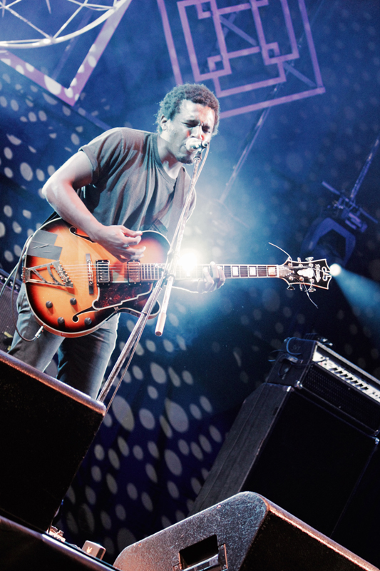 今回、ほぼ唯一のヒップホップ勢の参加となり、恵まれたシチュエーションとは言いづらかったジョーイ・バッドアス。実際、序盤は会場の雰囲気を掴むのに腐心していた印象があった。だが、一度調子に乗り出せば、やはりそこは未来の大物候補。DJと、さらに地元のクルー<プロ・エラ>の同僚ラッパー、Nyck Cautionも引き連れたパフォーマンスで、どんどん観客を引き込んでいく。曲間に何度も要求される「プロ!プロ!プロ!プロ!プロ!プロ!プロ!エラ!」というコールもすっかり耳に馴染んだ。生音のサンプリングによる浮遊感のあるトラックも気持ちよかったし、一曲一曲がサクッと終わるセットリストも興味深かった。こういう若手のヒップホップ・アクトを日本でももっと観たい!