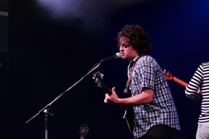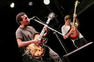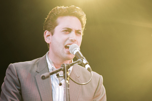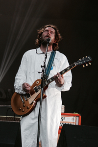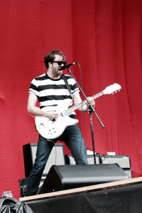 今年出演した若手バンドの中で、その計り知れないポテンシャルを見せつけてくれたのが、米フィラデルフィアを拠点に活動する20代そこそこのキッズ、ザ・ディストリクツだ。哀愁漂う激シブな歌声とチョビ髭が魅力の(?)フロントマンのロブがハーモニカをプレイする「Funeral Beds」や「Long Distance」などアメリカーナにも通ずるゆったりとしたナンバーで固めた序盤から、イントロで大歓声が上がった「4th and Roebling」などでジワジワと会場を温め、ラストは8分強のナンバー「Young Blood」で烈々たるジャム・セッションに突入。佳境に入ると、ロブが「It's a long way down from the top to the bottom~」の感傷深いリフレインとともにギターを荒々しくかき鳴らしながら、ステージ上を野獣のごとく暴れまくり、観客の盛り上がりは最高潮に。これこぞ“ライブ・ミュージック”と言わんばかりに、身魂をもって表現してくれた彼らへの熱のこもった拍手は撤収が始まっても、しばらく鳴り止まず。この直後にMTVのブースで行われたミニ・ライブで最後にロブがソロで情緒たっぷりに披露してくれた「Suburban Smell」も秀逸で、感銘すら覚えた。これからが本当に楽しみなバンドに出会えた気がした。