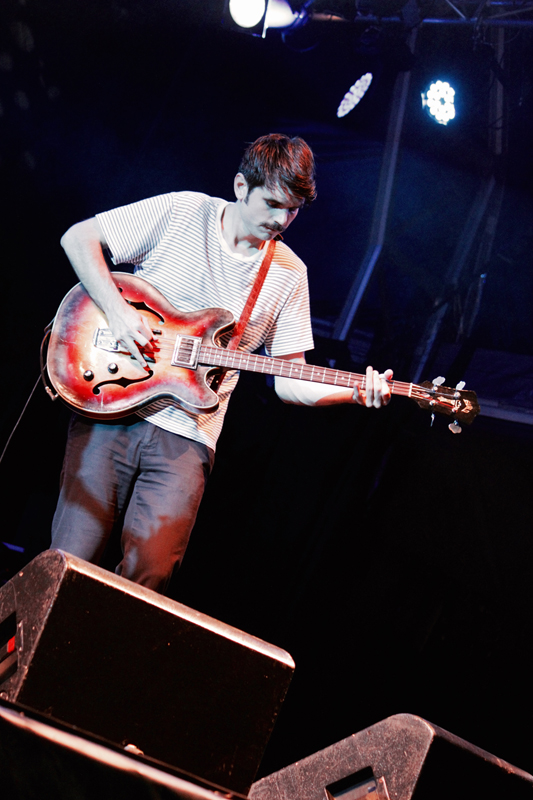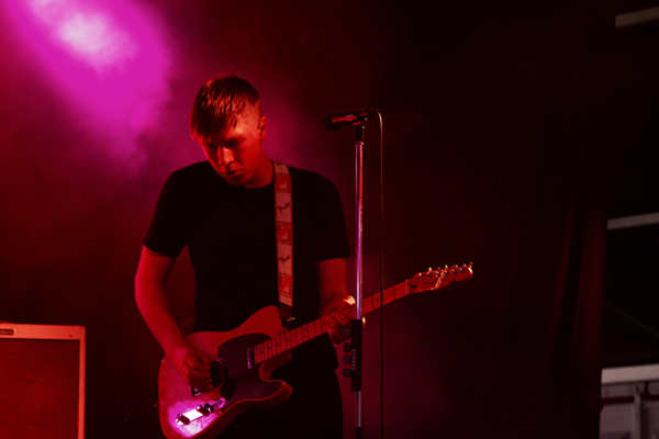 トップバッターを飾った昨年の【Hostess Club Weekender】では、アグレッシヴでタイトなパフォーマンスを見せてくれたサウス・ロンドン出身の4人組、ザ・ボヒカズ。大入りの<RED MARQUEE>ではメンバー自身によるセッティングから、そのまま観客とのコール&レスポンスでライブがスタート。前回の来日時にプレイしていたデビュー・シングル「XXX」や「Where You At」など男気溢れる直球なロックンロール・チューンのみならず、波打つギター・サウンドにとコーラスが思わず口ずさみたくなるほどメロディアスな「The Making Of」や「To Die For」など、より“聴かせる”ミッドテンポなナンバーがセットに加わり、さらに幅広いバンド・サウンドが提示されていたのが印象的だった。曲間では、フロントマン、ドミニク・マクギネスが日の丸が描かれた扇子をパッと開き、拍手&笑いを誘ったり、恒例の「ツギハー」(ちょっと下手になってた?)も飛び出し、愛嬌たっぷりに観客を煽る。ラスト「Swarm」のイントロが鳴り響くと「待ってました~!」とばかりにクラウドサーファーが続出、ライブの手応えを目の当たりにし、いつもはクールなメンバーからも自然と満面の笑みが溢れでる。いよいよ再来週リリースされるデビュー・アルバムへ向けてさらに期待を募らせてくれる大満足なセットだった。