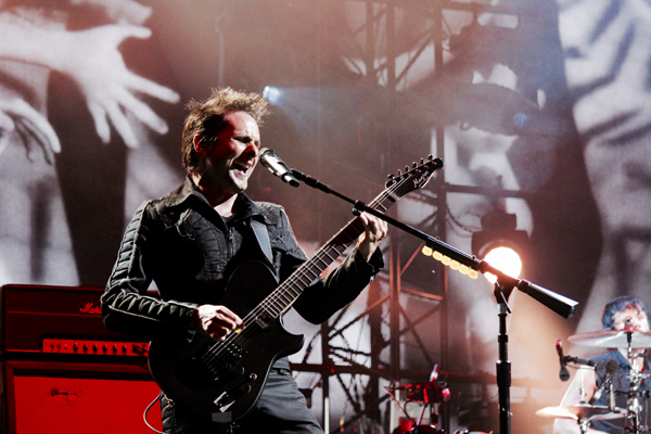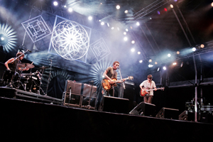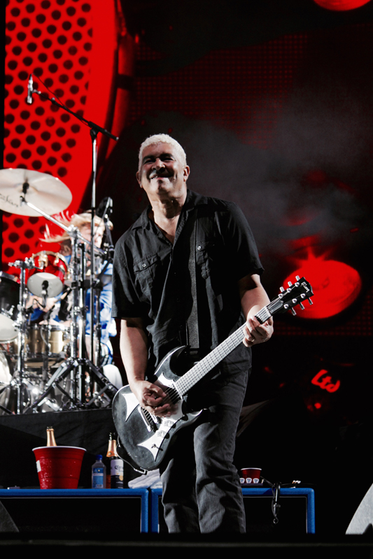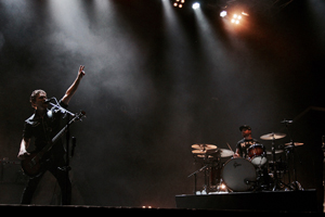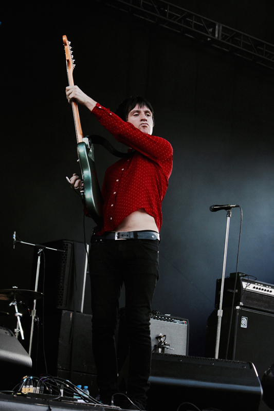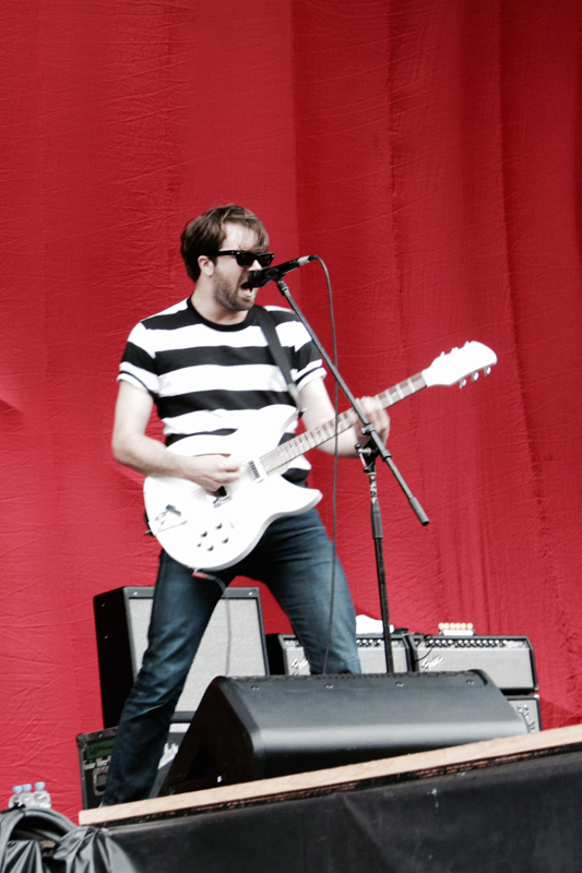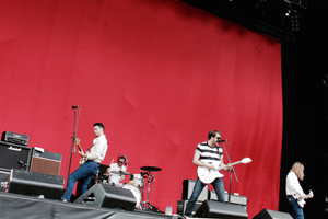 最近すっかりオールバックが定着したフロントマンのティム・ウィーラーが自らセッティングをしながら、トレードマークのフライングVを片手に「Shining Light」のコーラスを歌ってくれるというプチ・サプライズから幕開けしたアッシュのステージ。8年ぶりの新作『カブラーモ!』収録の「Evel Knievel」でライブがスタート。1992年からかれこれ20年近く一緒に活動していることもあり、ティム、マーク、リックの3人による息がピッタリの豪快な演奏が序盤から炸裂。新作からの楽曲は4割、残りは過去6作品からのヒット・ナンバーで構成されたファン歓喜のセットリストということもあって、過去の曲をプレイした際の盛り上がりが半端なく、新曲をやや申し訳なさそうに紹介する姿には、彼らの謙虚&ファン思いな人柄も伺える。ラストは、名曲「Girl From Mars」~「Burn Baby Burn」の観客を巻き込んだ大シングアロングでフィニッシュ。「Sometimes」とか「Jesus Says」とか、もっと聴きたい曲たくさんあったよ~、と名残惜しい部分もあったが、90年代から今日に至るまで良曲を書き続けている数少なきUKロック・バンドだ、というのを改めて実感させられた1時間だった。