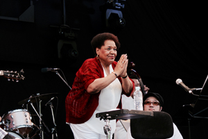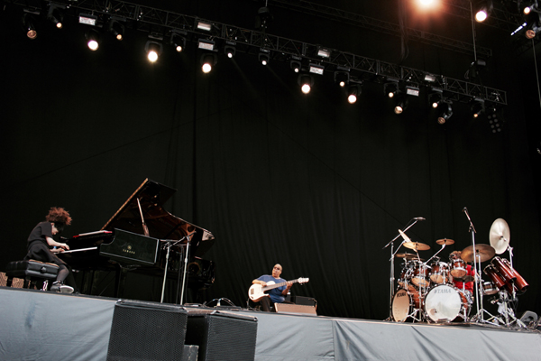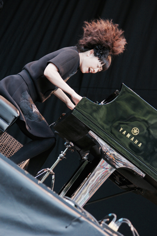 <GREEN STAGE>から観た客席を「圧巻の景色」と評した彼女。そのMC中の朴訥とした人柄と、演奏中の没入具合はとても同一人物とは思えない。しかも、彼女だけじゃない。アンソニー・ジャクソンもサイモン・フィリップスも、演奏時の没入の度合いが尋常でない。それは常人には思いもつかないスピードで長距離マラソンをするアスリートのイメージにも通じていた。演奏後のお客さんのリアクションも、歓声というよりため息やざわめきに近いというか。優れたアクトの出ることが多い<GREEN STAGE>ではあるが、この日、上原ひろみトリオがもたらした緊張感と昂揚はやはり格別のものだったのではないだろうか。
