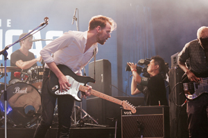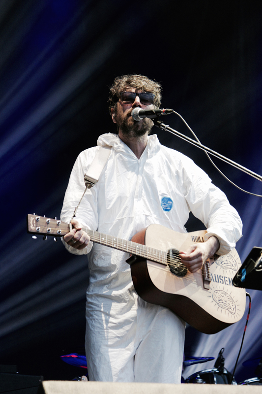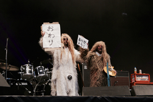 こちらも活動再開にともない久々の来日となったスーパー・ファーリー・アニマルズ。しばらく新作がなかったこともあり選曲はやはりオールタイム・ベスト。とは言え、約1時間のセットの中で徐々に盛り上げていくようなセットで、いわゆるお祭りモードとはひと味違うスタンスが垣間見えるのが心強い。3声のボーカルを活かした繊細なコーラスワークが映える曲も多く、その点でも特徴的なステージだったと思う。ラストに披露された「The Man Don' Give A Fuck」ではメンバー4人がステージ袖に引っ込み、このままアウトロかと思わせて、毛むくじゃらのモンスターのような着ぐるみやロック・スター風の衣装に着替えて再登場、そのまま大サビに雪崩れ込むという賑やかな展開を見せ、大いに盛り上がった。ユーモア面でも一等賞でしたね。