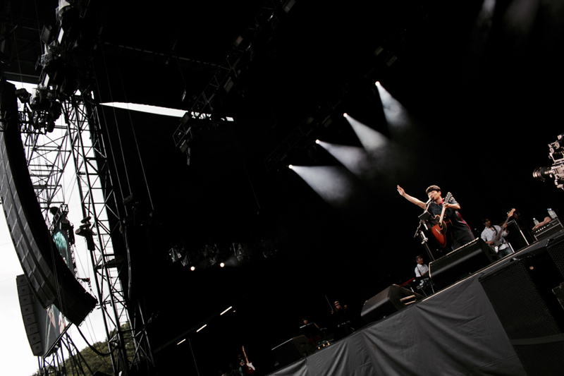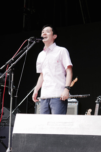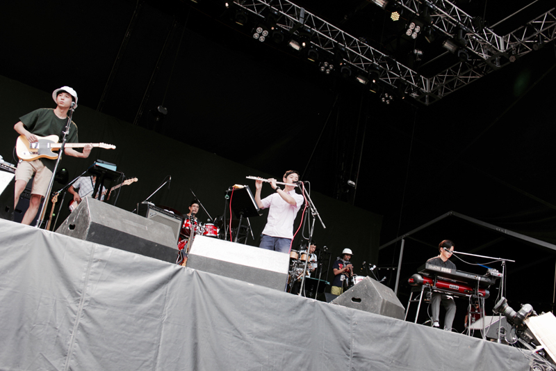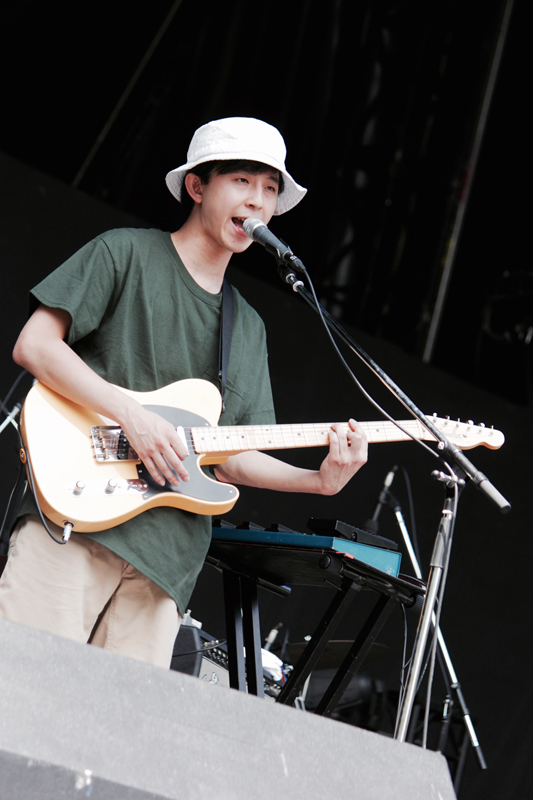 この日、ある意味ダークホースとも言える素晴らしいステージを繰り広げたのがアクアラング。フェスの場らしいお祭り感のある盛り上がりというよりも、ジワジワと観衆を引き込んでいくようなパフォーマンスだった。ステージメンバーも、本人の弾く鍵盤とサポートの1名だけ。特に、ドラム無しで演奏される曲がいずれも素晴らしく、「Somebody To Love」などは白眉と呼べるパフォーマンスだった。今回、フジの出演は10年ぶりだったということだが、ファンの待望感も極めて高いステージだったように思う。別日のASH等もそうだったが、CDが売れづらくなっている現在の状況下で、しかし、こうして長く愛されているアーティストの来日公演をどのように実現していくかは今後も引き続き重要な課題だろう。その意味でも、やはりフジのような場はずっと続いて欲しい。